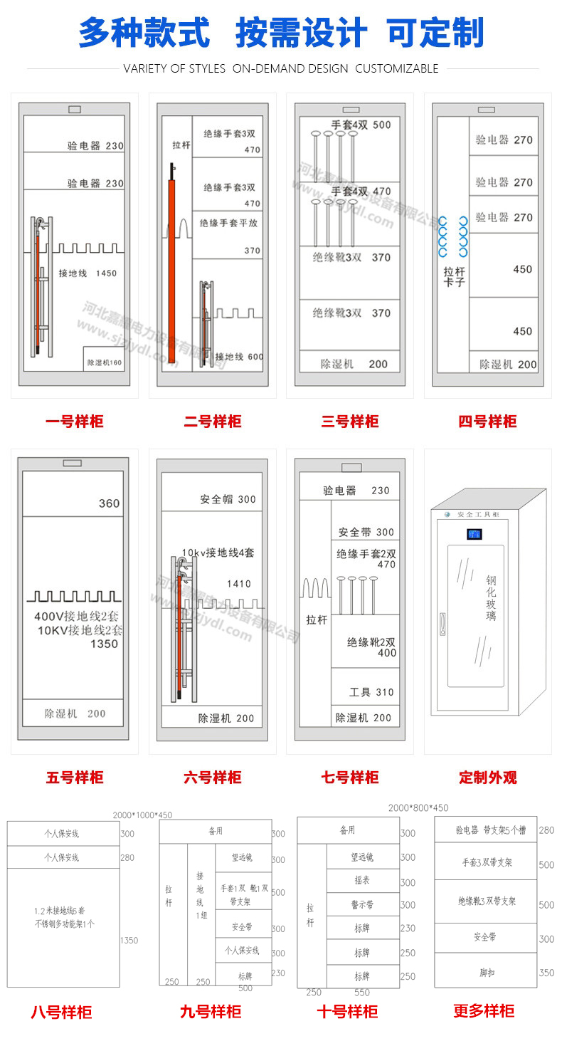 主要用于非絕緣工器具的存放,如安全帶、安全帽、腳扣、安全圍欄、標識牌、接地線、儀器儀表等產品。內部設計可根據客戶要求定制。