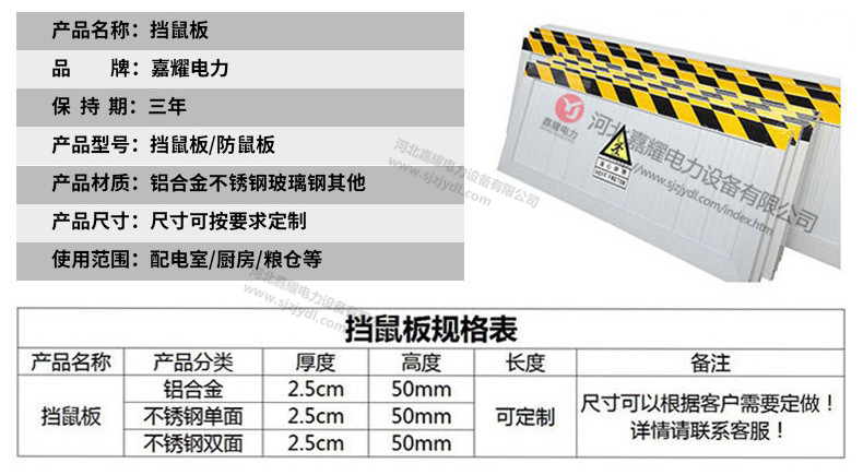 4.擋鼠板的高度常規尺寸為50厘米,寬度可根據客戶要求制作。