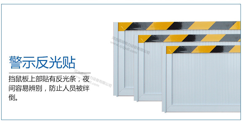 3.擋鼠板上部貼有反光條,夜間容易辨別,防止人員被絆倒。